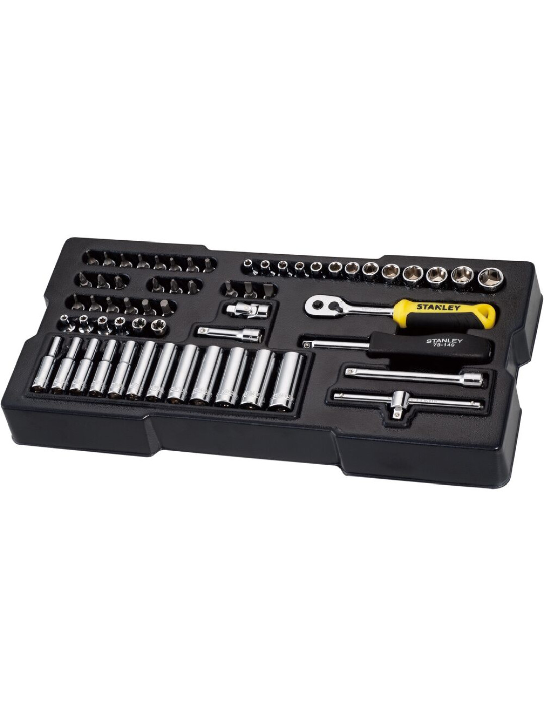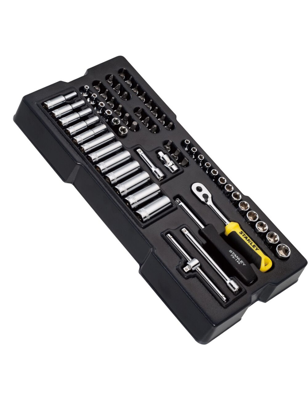 60 dalių 1/4 colio galvučių rinkinys STANLEY TRANSMODULE SYSTEM™ modulių dėkle suderinamas su STANLEY transmodule sistemos laikymo spintelėmis. Rinkinį sudaro kriaušės formos reketas, pagamintas iš chromo vanadžio plieno, su dviejų medžiagų rankena ir chromo vanadžio galvutėmis.