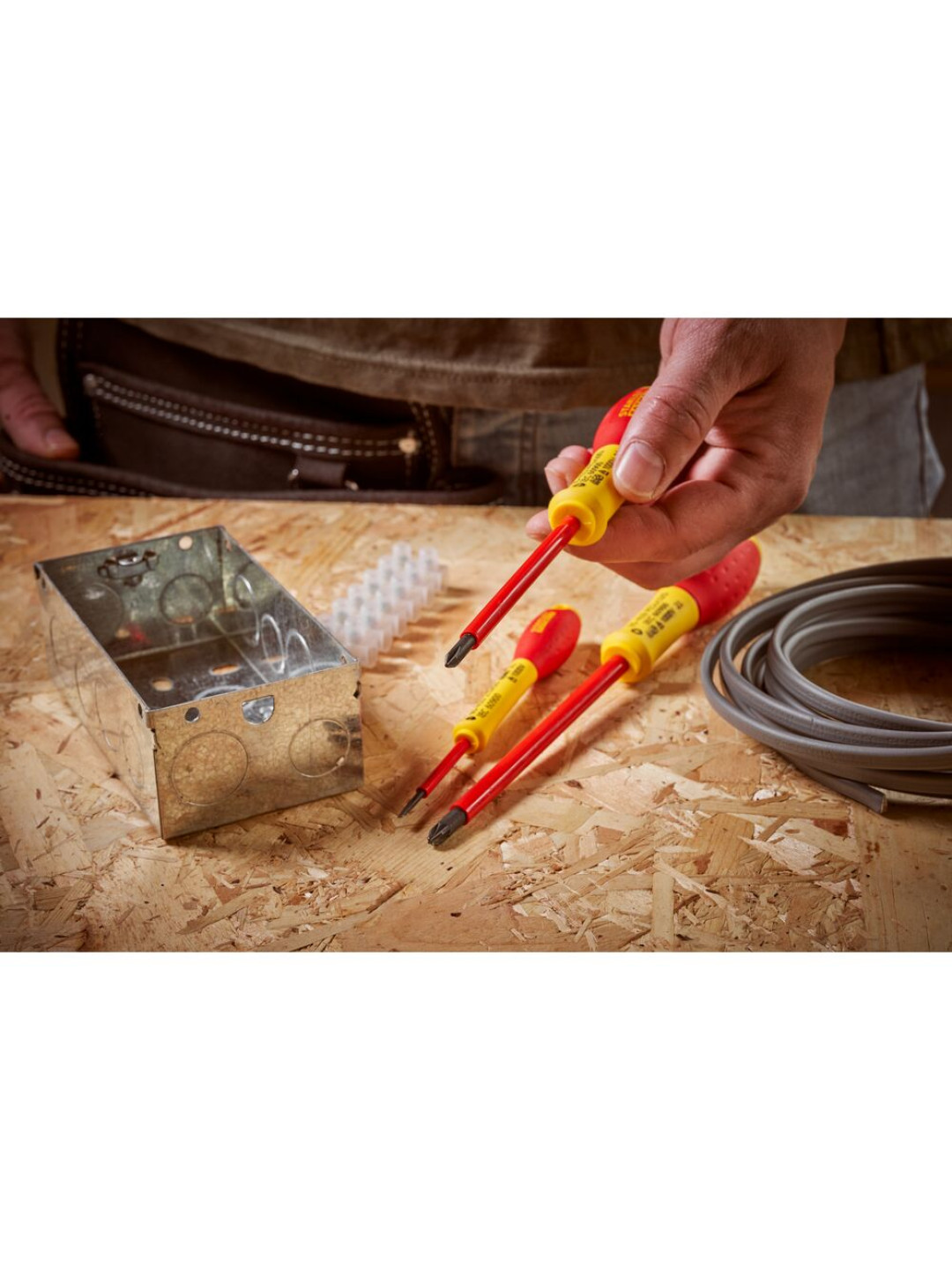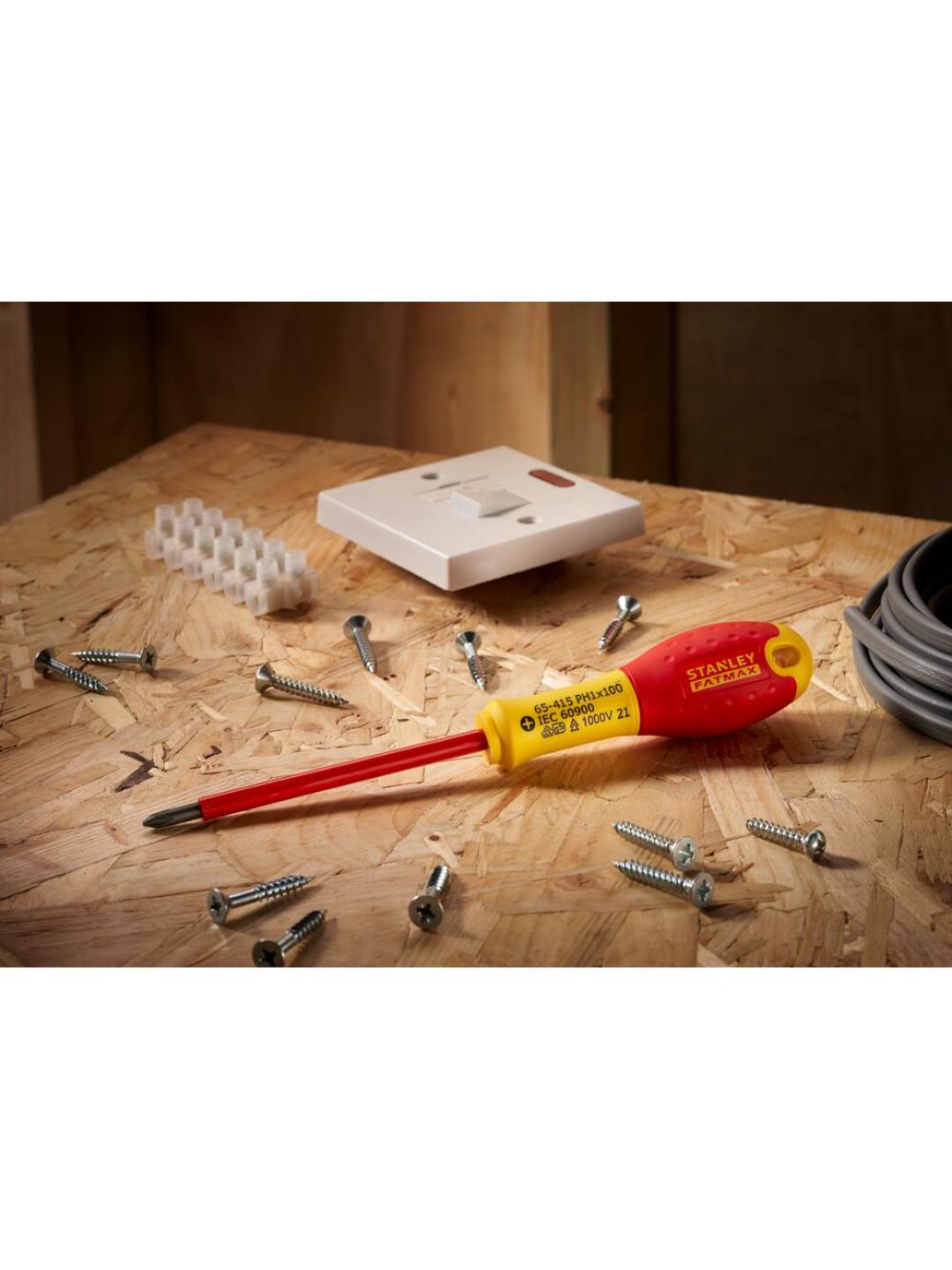 STANLEY FATMAX izoliuotas atsuktuvas PH0 x 75 mm turi CNC tiksliai apdirbtą antgalį, kuris užtikrina tvirtumą, našumą ir ilgą gaminio tarnavimo laiką. Užtikrina optimalų matmenų atitikimą, tikslumą ir valdymą, taip pat sumažina išsikišimą. Apdorotas smėliasrove, kad būtų apsaugotas nuo korozijos ir nusidėvėjimo. VDE patvirtintas iki 1000 V. Per visą strypo ilgį driekiasi tvirta plastikinė apvalkalo izoliacija, apsauganti naudotoją nuo įtampos netekimo. Raudona rankena žymi, kad įrankis visiškai atitinka VDE standartus. Tinka naudoti profesionaliems elektrikams. Pagamintas STANLEY Arbois gamykloje Prancūzijoje pagal griežtus standartus ir specifikacijas, užtikrinančias puikų naudojimą, patvarumą ir patikimumą. Juodo fosfato danga ant antgalio užtikrina išskirtinai ilgą tarnavimo laiką. Rankena tiesiogiai prilieta prie strypo praktiškai neperleidžiamu sujungimu, užtikrinant išskirtinį patikimumą. VDE instituto sertifikuotas naudojimui iki 1000 V.