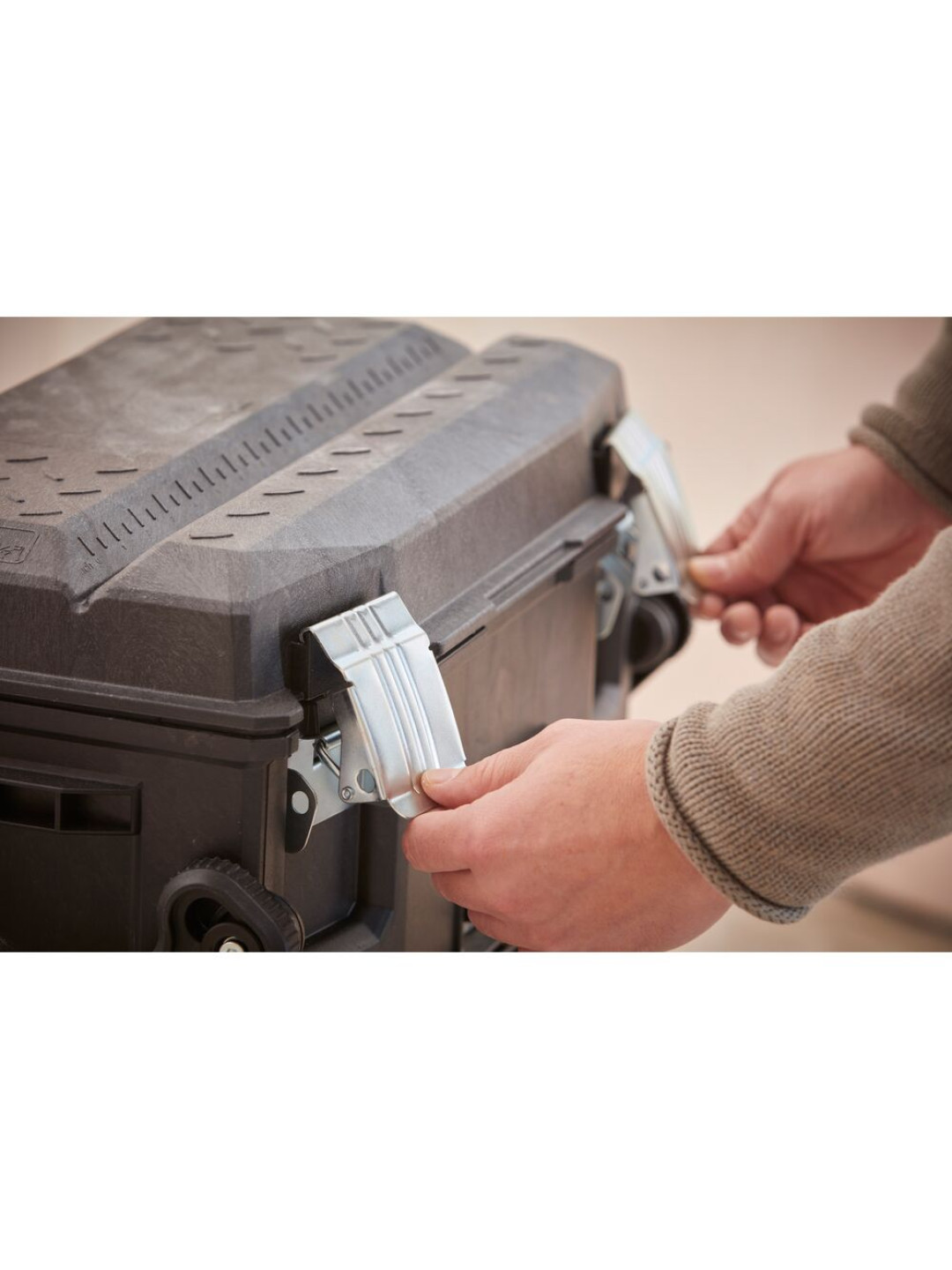 „STANLEY FATMAX“ riedančiųjų dirbtuvių rinkinys su metaliniais skląsčiais yra nešiojamas dirbtuvių sprendimas, kurį sudaro ypač didelė apatinė dėžė, didelis reguliuojamas organizatorius ir įrankių dėžė – todėl jis idealiai tinka elektriniams įrankiams, rankiniams įrankiams, smulkioms dalims ir priedams laikyti. Jis pasižymi konsoliniu dizainu, kuris suteikia greitą ir lengvą prieigą prie 3 įrankių ir dalių lygių. Įrankių dėžėje yra vidinis, nešiojamas dėklas mažiems rankiniams įrankiams laikyti, taip pat integruotas V formos griovelis medienai, vamzdžiams ir plastikiniams vamzdžiams laikyti ir pjauti. Komplekte yra spynos kilpa saugumui, teleskopinė traukimo rankena lengvam transportavimui ir tvirti ratukai, užtikrinantys patvarumą ir stabilumą net ant nelygių paviršių.
