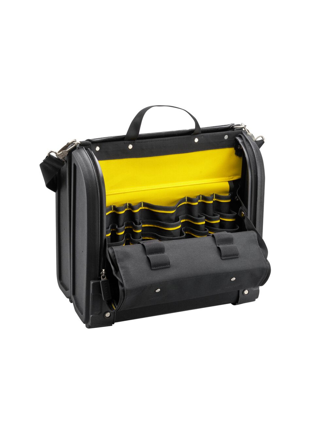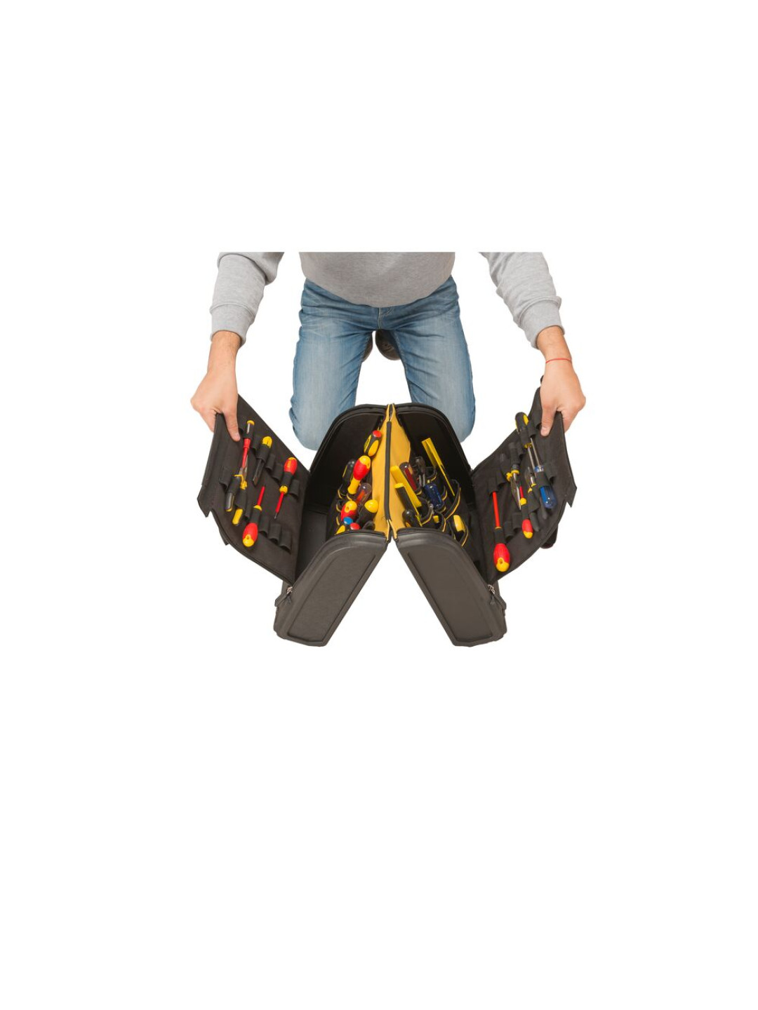 STANLEY FATMAX 19 colių įrankių organizatoriaus krepšys pasižymi plačia anga, kad būtų galima greitai pasiekti visą turinį, ir keliomis vidinėmis kišenėmis atsuktuvams, replėms ir kitiems smulkiems įrankiams bei techninei įrangai susidėti. Krepšys taip pat turi tvirtą, vandeniui atsparų pagrindą, kuris apsaugo turinį nuo purvo ir drėgmės. Komplekte yra minkšta nešiojimo rankena ir reguliuojamas pečių dirželis, kad būtų patogu ir lengva transportuoti į darbo vietą ir iš jos. Pagamintas iš tvirto 600 denjė audinio, kad būtų ilgaamžis.