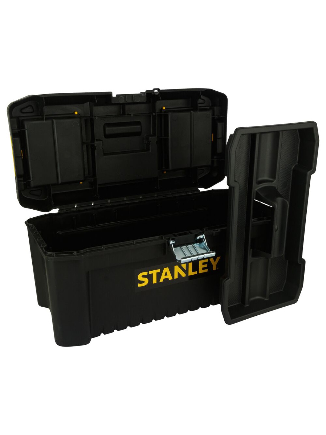 16 colių STANLEY įrankių dėžė su metaline skląsčiu idealiai tinka kasdieniams būtiniausiems įrankiams laikyti. Ji turi du dangtelio organizatoriaus skyrius smulkioms dalims ir priedams, taip pat nuimamą dėklą mažesniems įrankiams ir komponentams. Komplekte yra metalinis skląstis patvarumui, spynos kilpa saugumui ir nešiojimo rankena lengvam transportavimui.