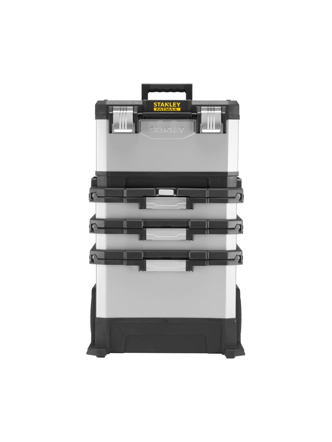 „STANLEY FATMAX“ metalo ir plastiko valcavimo dirbtuvėse yra daug vietos visiems jūsų elektriniams įrankiams, rankiniams įrankiams, tvirtinimo detalėms ir priedams laikyti. Šis sandėliavimo sprendimas, turintis daug vietos nešiotis ir patogų transportavimą su tvirtais, patikrintais ratukais, leidžia pasiimti dirbtuves su savimi, kad ir kur bebūtumėte. Tvirtas ir patvarus „Rolling Workshop“ turi didelę metalinę daiktadėžę, du gilius ištraukiamus stalčius ir nuimamą įrankių dėžę su nuimamu transportavimo padėklu. „Rolling Workshop“ taip pat turi nuimamus organizatorių puodelius smulkioms dalims ir priedams, taip pat integruotą V formos griovelį medienai, vamzdžiams ir plastikiniams vamzdeliams laikyti ir pjauti. Komplekte yra dideli metaliniai nerūdijantys skląsčiai, teleskopinė rankena ir spynos kilpa saugumui užtikrinti.