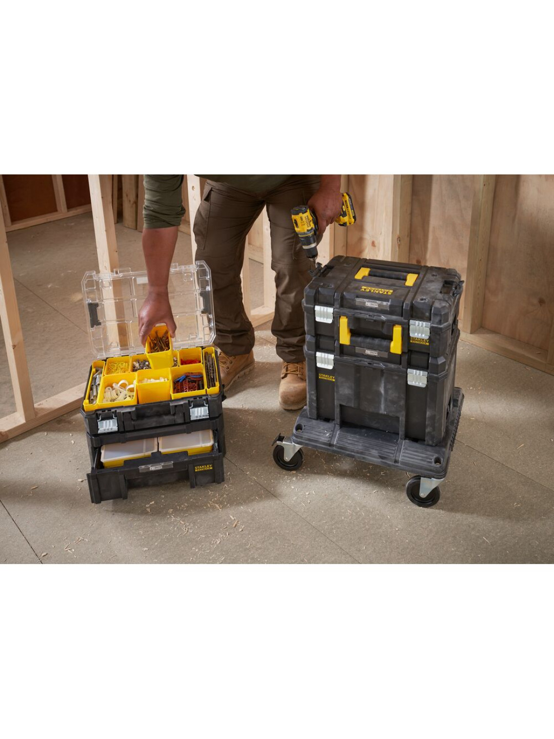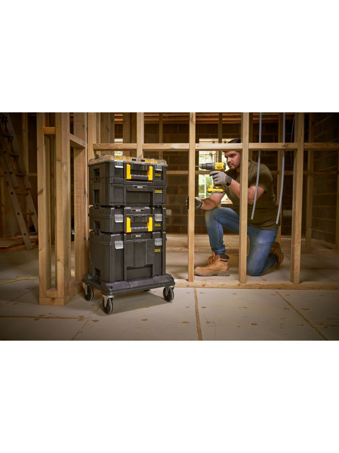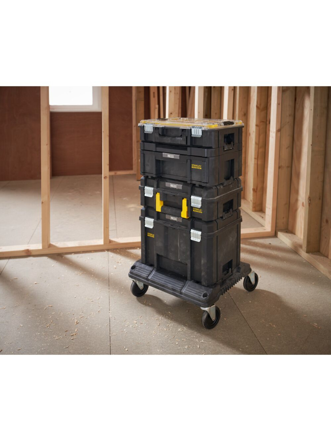 STANLEY FATMAX PRO-STACK™ 5 modulių mobilus sandėliavimo bokštas yra STANLEY FATMAX PRO-STACK™ asortimento dalis – tai pritaikoma, sujungiama, sudedama ir nešiojama sandėliavimo sistema, pasižyminti tikru universalumu, kad ir kokia būtų užduotis. Bokštą sudaro 10 puodelių organizatorius, gilus stalčius, negili dėžė, gili dėžė ir vežimėlis, kuriuose yra daug vietos smulkioms detalėms, rankiniams įrankiams ir didesniems elektriniams įrankiams laikyti. Vežimėlio keliamoji galia yra 100 kg, jis skirtas efektyviai ir saugiai manevruoti PRO-STACK™ modulius darbo vietoje.