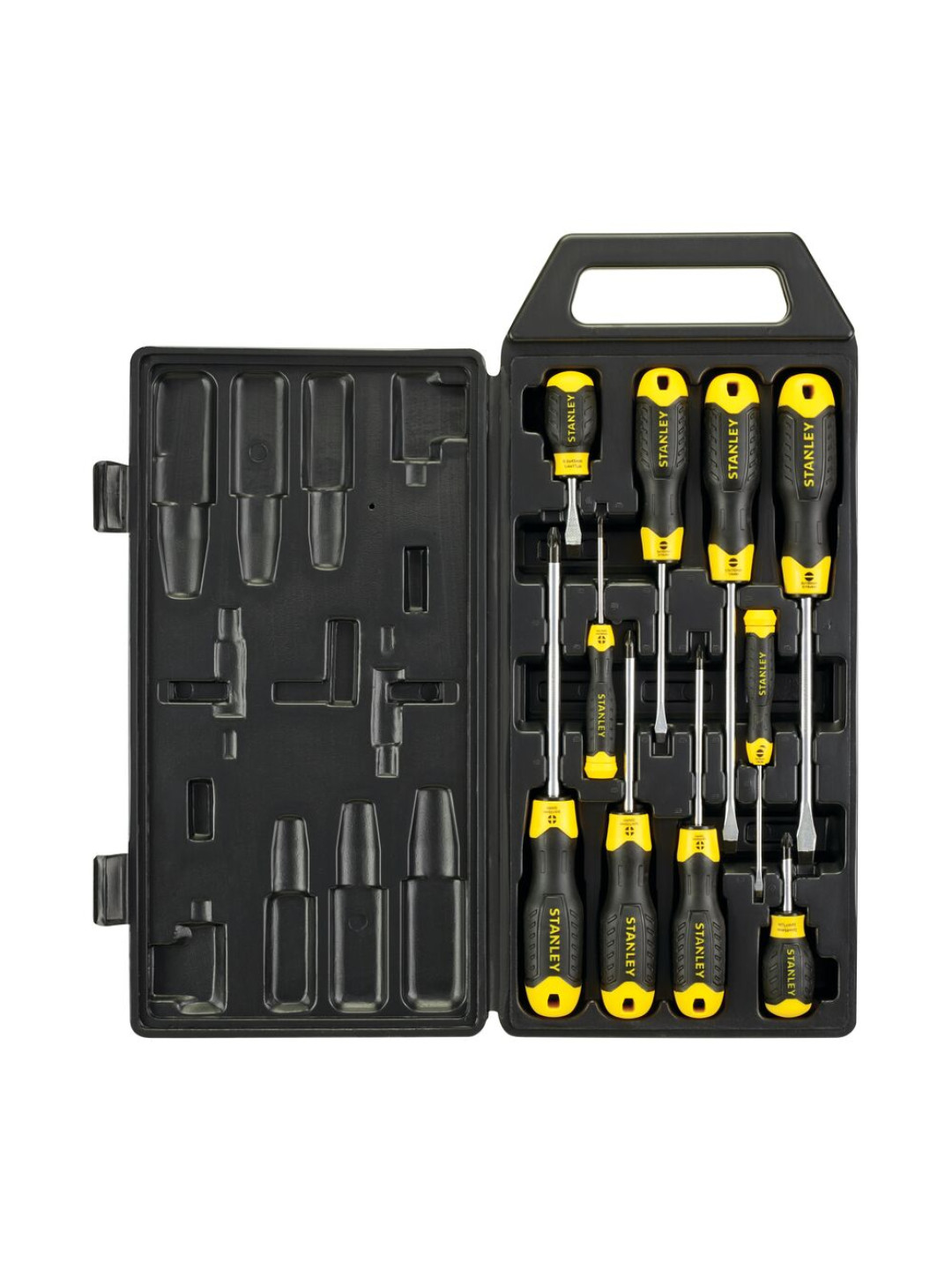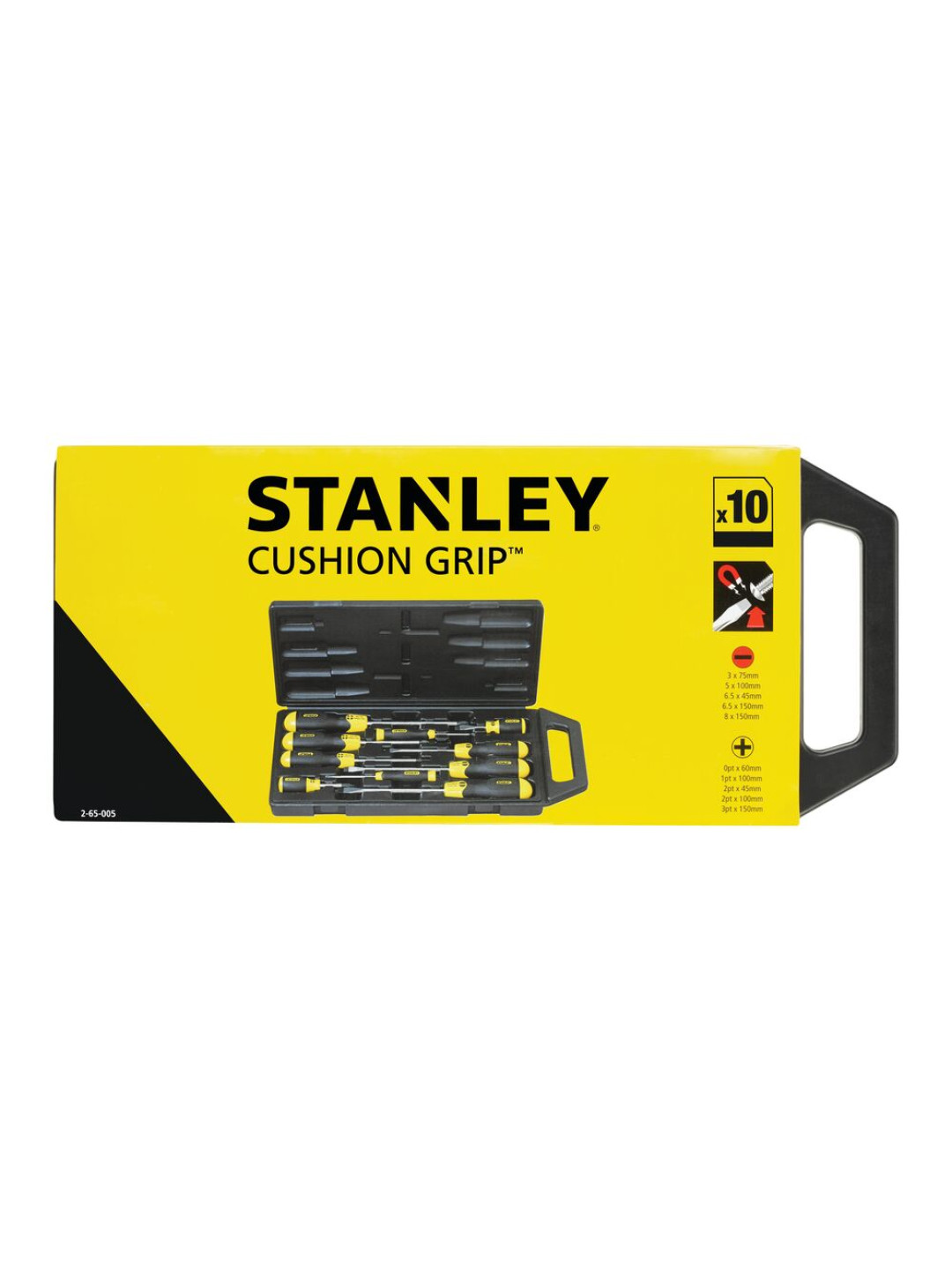 Pagamintas su didelio skersmens minkšta rankena, STANLEY CUSHION GRIP™ 10 vnt. atsuktuvų rinkinys „Phillips“ su išpjovomis yra sukurtas išskirtiniam komfortui, ypač atliekant pasikartojančius profesionalius darbus. Pagamintas iš didelio stiprumo chromo vanadžio plieno, siekiant sumažinti antgalio lūžimo tikimybę, šis aukštos kokybės atsuktuvas tinka sudėtingiems didelio sukimo momento darbams. STANLEY CUSHION GRIP™ 10 vnt. atsuktuvų rinkinys „Phillips“ su išpjovomis yra sukurtas siekiant pagerinti varžtų laikymą ir tuo pačiu padidinti patvarumą, patikimumą ir gaminio tarnavimo laiką. Rankena yra tiesiogiai prilieta prie strypo, kad būtų užtikrintas didesnis tvirtumas ir praktiškai nepertraukiamas sukibimas. Dėl aiškiai pažymėto antgalio ID ant rankenos vartotojai gali lengvai atpažinti tinkamą atsuktuvą kiekvienam darbui.
