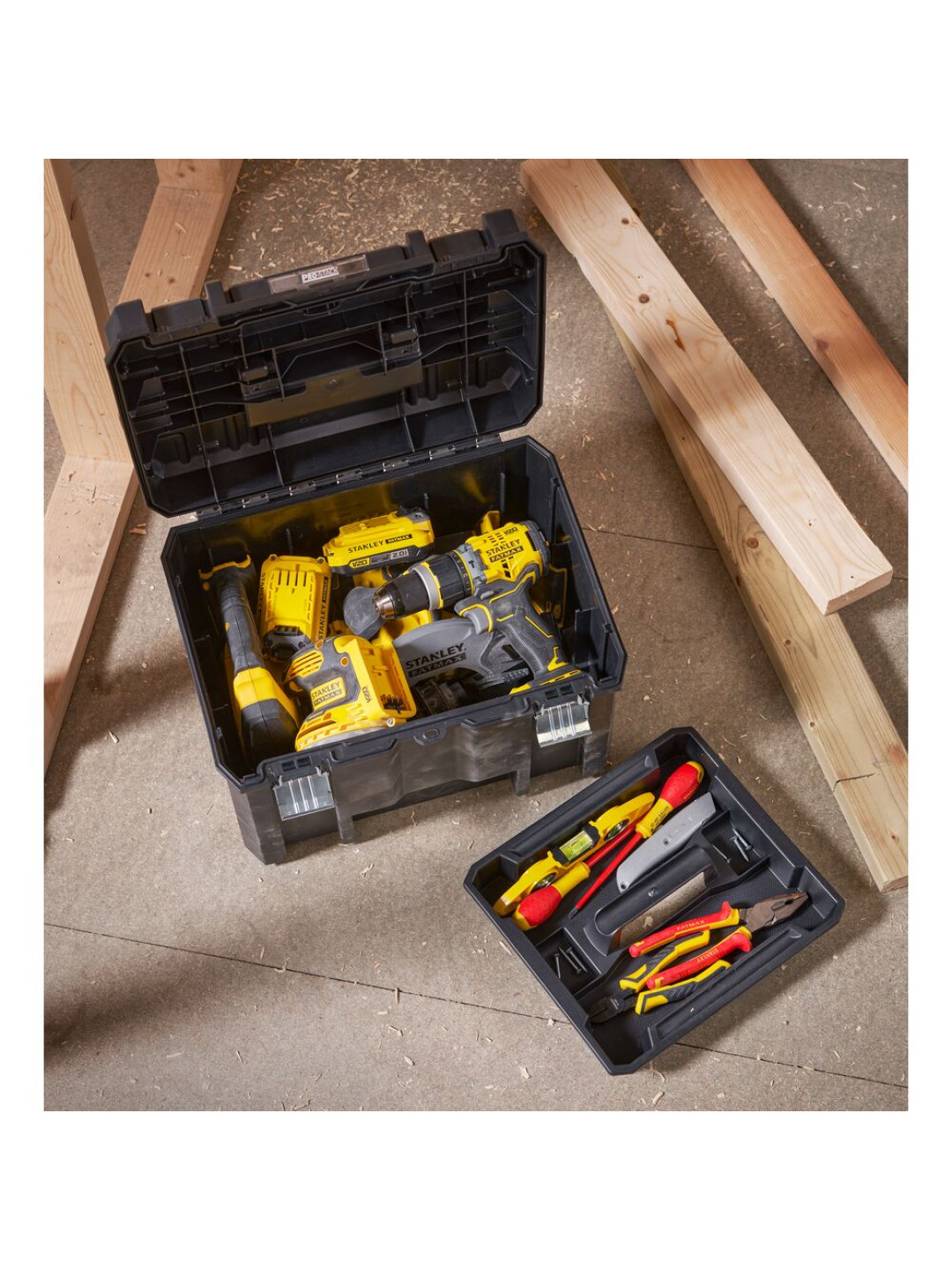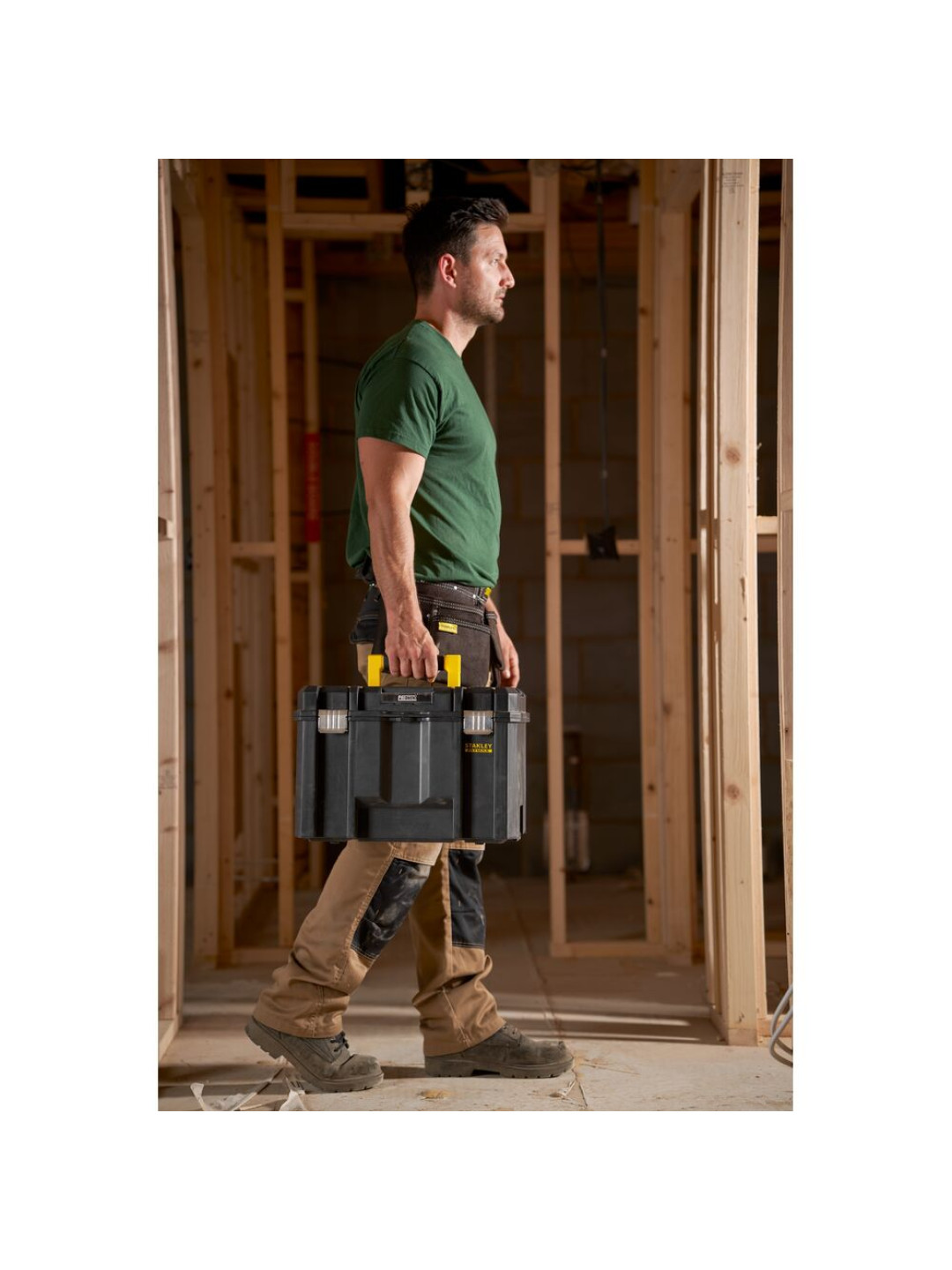 STANLEY FATMAX PRO-STACK™ gili dėžė (44 x 17,6 x 33,17 cm) priklauso STANLEY FATMAX PRO-STACK™ asortimentui, kuris yra pritaikoma, sujungiama, sudedama ir nešiojama laikymo sistema, užtikrinanti tikrą universalumą bet kokiai užduočiai. 22 litrų talpos gili dėžė idealiai tinka didesniems elektriniams įrankiams laikyti ir taip pat turi integruotą, nuimamą laikymo dėklą rankiniams įrankiams ir mažesniems daiktams. Gili dėžė turi nerūdijančius metalinius skląsčius patvarumui, spynos kilpą saugumui ir nešiojimo rankeną lengvam transportavimui.