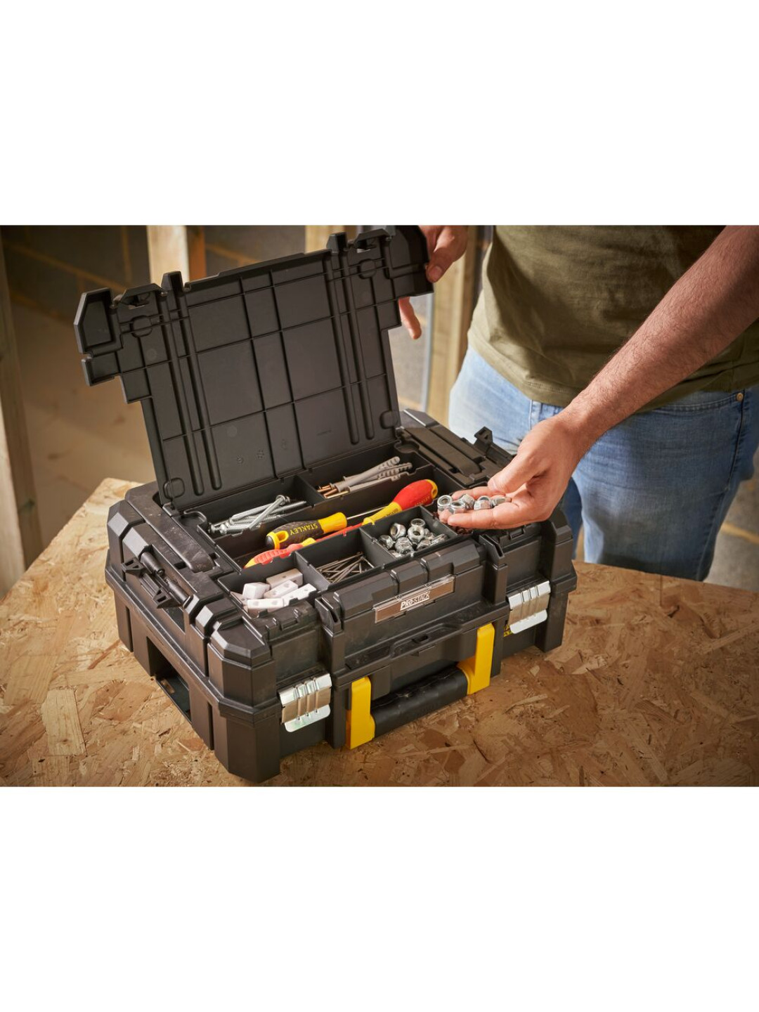 STANLEY FATMAX PRO-STACK™ viršutinė negili dėžė organizatoriui (44 x 18,5 x 33,17 cm) priklauso STANLEY FATMAX PRO-STACK™ asortimentui – tai pritaikoma, sujungiama, sudedama ir nešiojama laikymo sistema, pasižyminti tikru universalumu, kad ir kokia būtų užduotis. Ji turi 14 litrų talpą ir integruotą negilų organizatorių, todėl idealiai tinka smulkioms dalims ir komponentams, rankiniams ir elektriniams įrankiams laikyti. Viršutinė negili dėžė organizatoriui turi nerūdijančius metalinius skląsčius, kad būtų patvari, nešiojimo rankeną, kad būtų lengva transportuoti, ir spynos kilpą saugumui.
