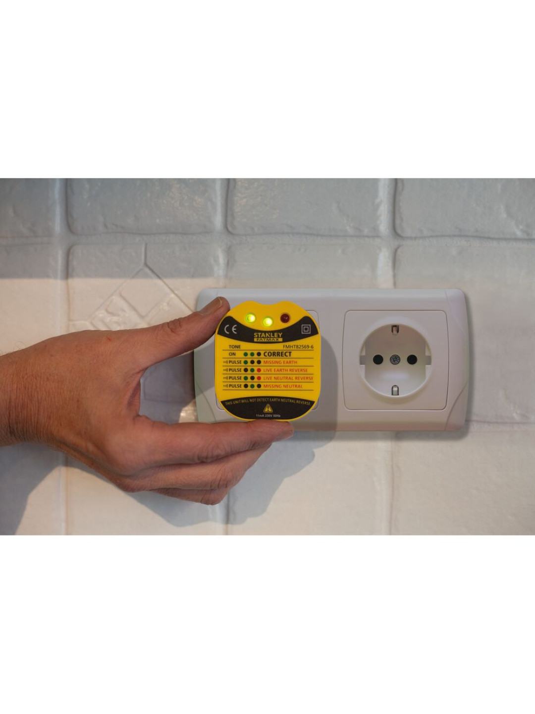 „STANLEY FATMAX“ 2 kontaktų sieninio kištuko testeris tinka naudoti su 230 V kintamosios srovės ES lizdais. Jis tiekiamas su CAT II 230 V testeriu ir šviesos diodu, rodančiu laidų būseną, pvz., teisinga, trūksta, įžeminimas, atvirkštinis įžeminimas, atvirkštinis nulinis laidas ir trūkstamas nulis. Šio testerio įtampos talpa yra 230 V.