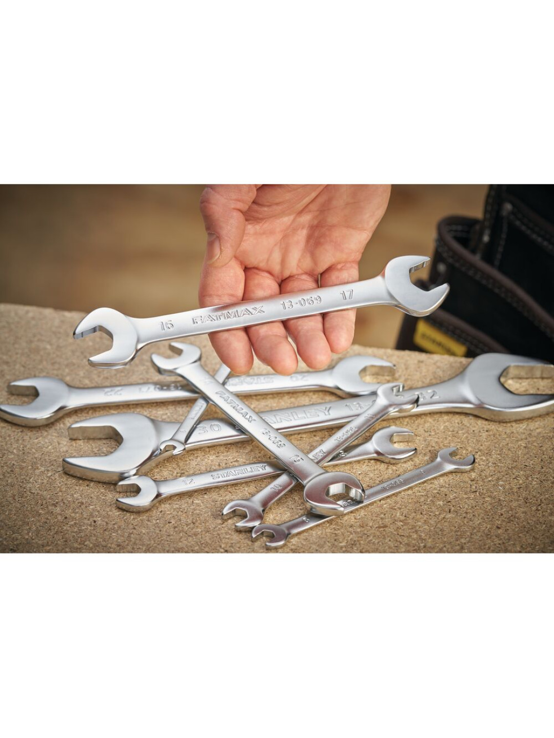 STANLEY FATMAX 30x32 mm neslystantis atviro galo raktas turi dvigubą atvirą galą, todėl viename rakte yra du skirtingi matmenys. Neslystantis profilis užtikrina geresnį varžtų kontaktą ir apsaugo nuo slydimo, o 15° kampu pasviręs atviras galas ir įdėklas suteikia geresnę prieigą ir didesnį sukimo momentą. Pagamintas iš korozijai atsparaus chromo vanadžio plieno su matinio chromo apdaila, kad būtų užtikrintas maksimalus tvirtumas ir ilgaamžiškumas.