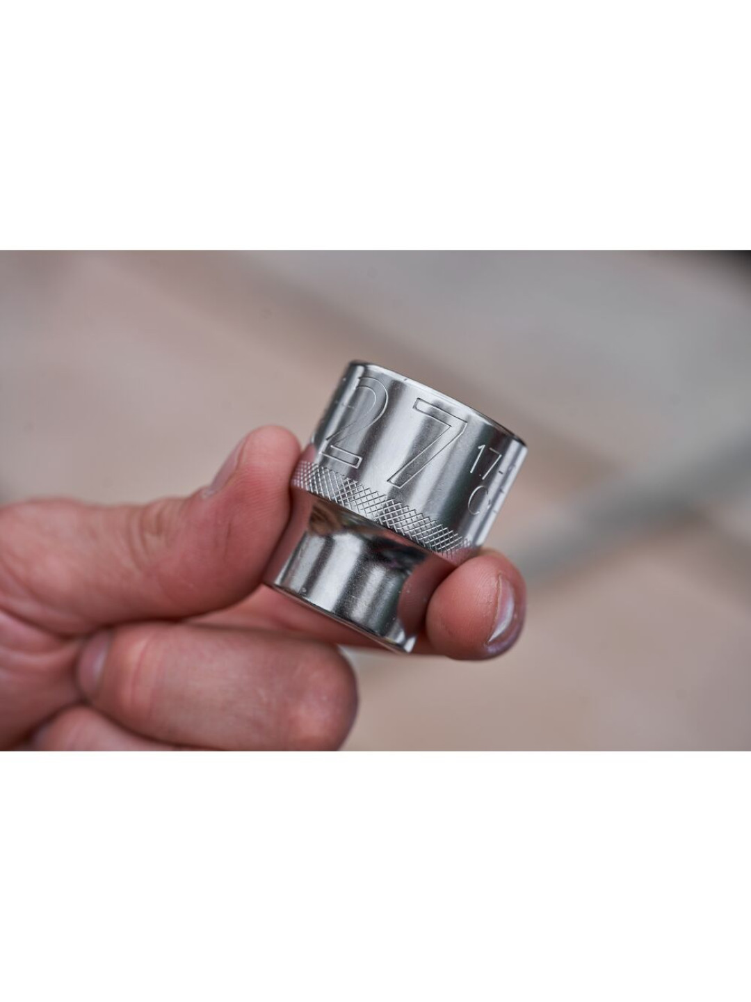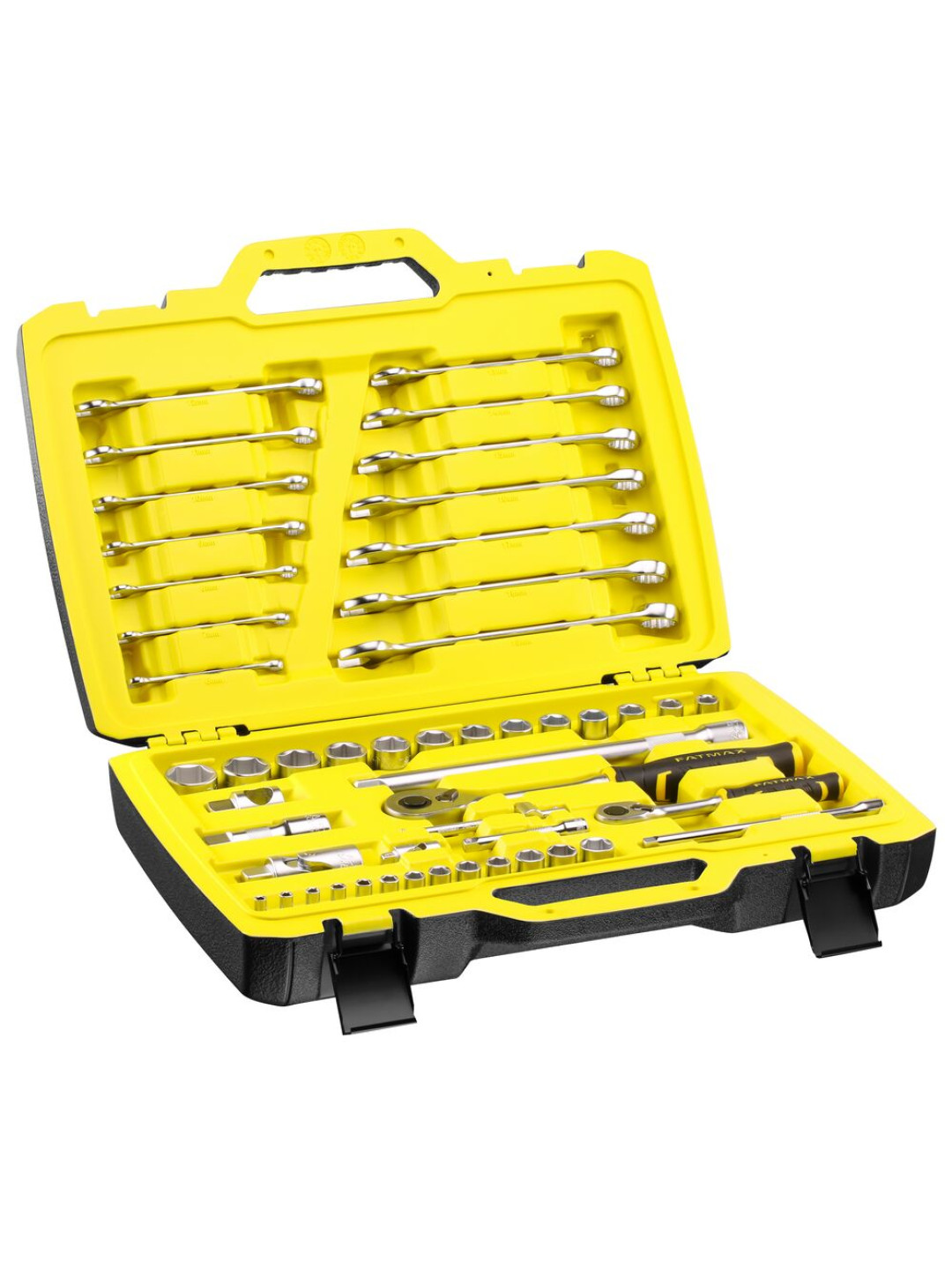 Didelis, lygus greito atleidimo mygtukas ir grioveliai, STANLEY FATMAX 1/4 col. ir 1/2 col. veržliarakčių rinkinys su priedais (50 vnt.) leidžia lengvai naudoti ir išimti galvutes. 1/4 col. ir 1/2 col. 120 dantų terkšlė su dvigubu skląsčio mechanizmu ir 3° žingsnio/lanko posūkiu garantuoja tikslumą ir greitį, leidžiantį pasiekti didesnį dantų skaičių, pagerinti tvirtumą ir geresnę prieigą, tinka 1/4 col. ir 1/2 col. galvutėms. Žemo profilio jungiklio svirtis apsaugo nuo atsitiktinio terkšlės pasukimo ir leidžia lengvai valdyti viena ranka. Taip pat pasižymi kaklelio žemyn nukreiptu dizainu, kad būtų lengviau naudoti siaurose erdvėse; „Maxidrive“ profilis, kad būtų maksimaliai padidintas kontaktas tarp galvutės ir veržlės/varžto; didelis matomumas, kad būtų lengva atpažinti galvutę. Chromuota apdaila ir dviejų medžiagų rankena garantuoja maksimalų komfortą, aukštą kokybę ir stiprų našumą.