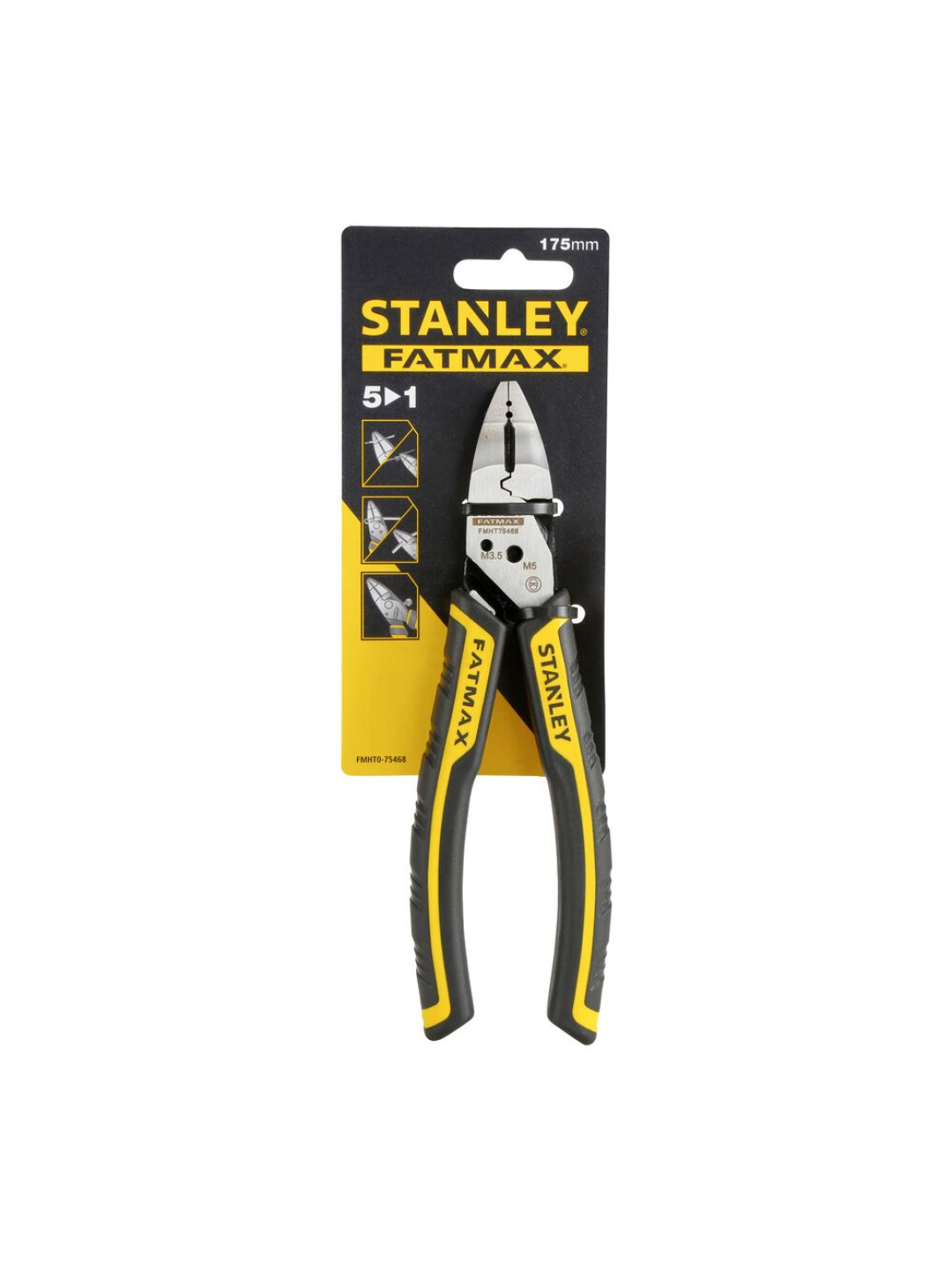 STANLEY FATMAX daugiafunkcinės 5 viename įstrižinio pjovimo replės yra universalus įrankis, sukurtas tikslumui ir ilgaamžiškumui. Šios replės, turinčios užspaudimo matricą 1,5 mm²–2,5 mm² laidams ir laidų nužievinimo įrankį dviem dydžiams (1,5 mm² ir 2,5 mm²), puikiai tinka įvairiems elektros darbams. Varžtų kirpimo replės gali tiksliai pjauti M3,5 ir M5 varžtus, o pusiau lygus pjovimo antgalis užtikrina labai tikslų lygų minkštų medžiagų pjovimą. Įstrižas pjovimo kraštas gali pjauti laidus iki 1,8 mm storio pianino vielai, todėl idealiai tinka įvairiems darbams. Pagamintos iš indukciniu būdu grūdinto, kalimo būdu CR-V plieno su grūdintais pjovimo kraštais, šios replės pasižymi išskirtiniu patvarumu, o ergonomiška dviejų medžiagų rankena užtikrina patogumą ir kontrolę naudojimo metu.