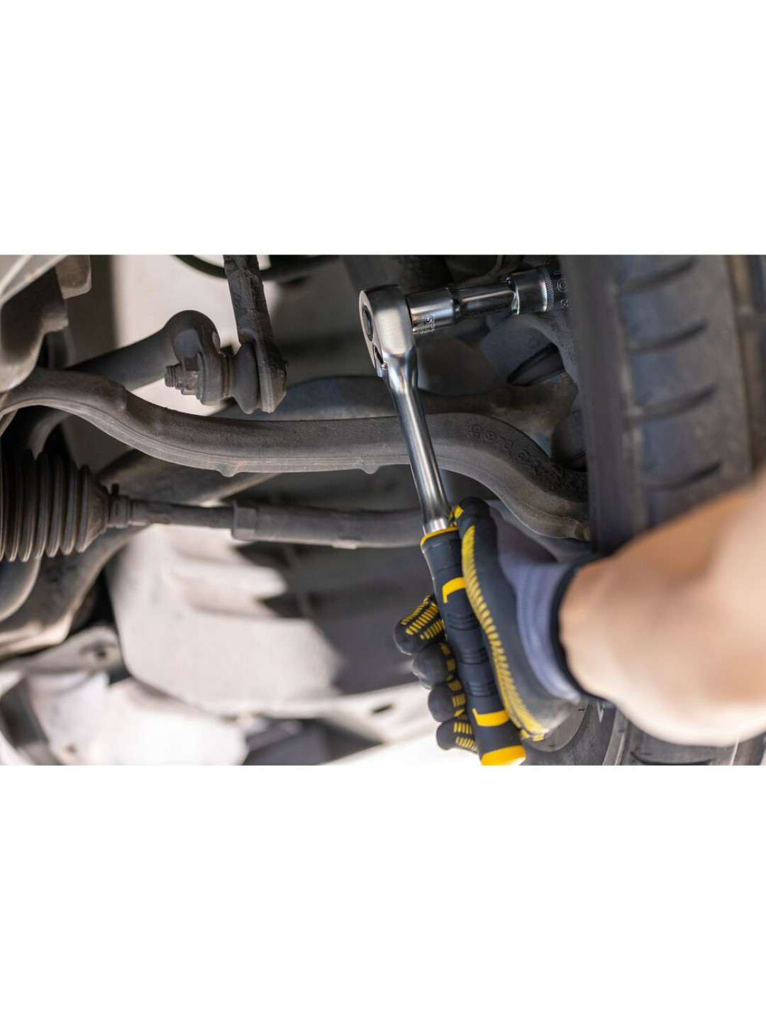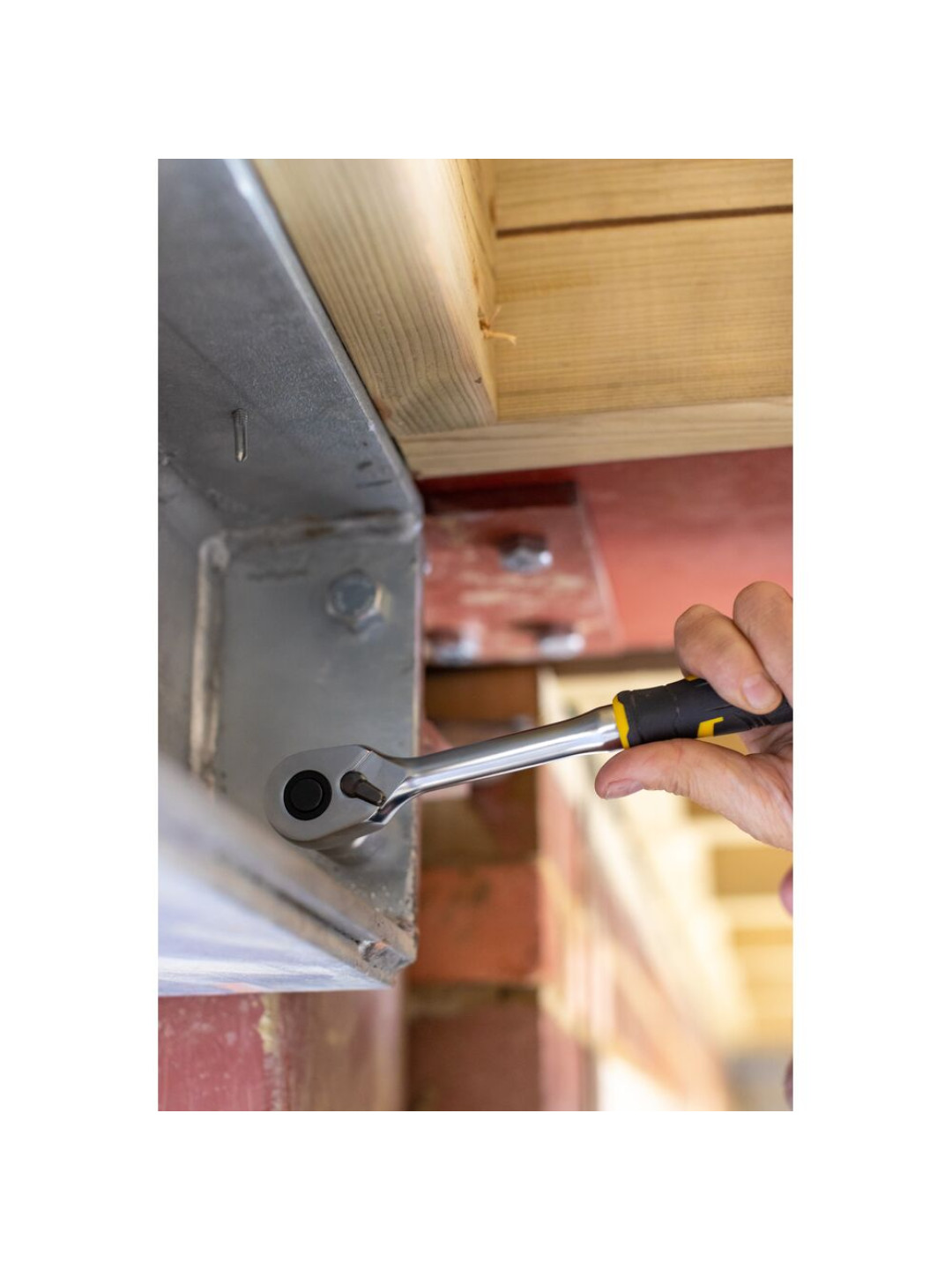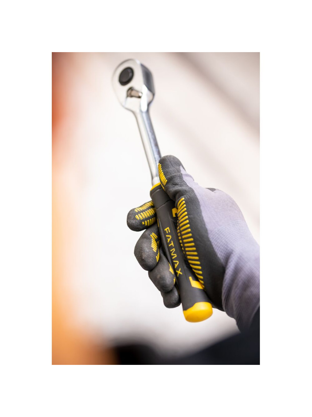 STANLEY FATMAX 3/8 col. 120 dantų terkšlė pagaminta iš smulkių 120 dantų, kurie leidžia atlikti 3° žingsnius dvigubo skląsčio mechanizme, užtikrinant geresnį užveržimo pajėgumą ir tikslumą ankštose vietose. Ji turi didelį, lygų greito atleidimo mygtuką, kad būtų lengva išimti galvutes. STANLEY FATMAX 3/8 col. 120 dantų terkšlė tinka bet kokiai aplinkai. Ši universali STANLEY FATMAX 3/8 col. 120 dantų terkšlė sukurta efektyvumui ir našumui. Patogumą garantuoja dviejų medžiagų rankena, kuri užtikrina maksimalų sukibimą, apsaugo nuo atsitiktinio perjungimo ir leidžia lengvai valdyti viena ranka.