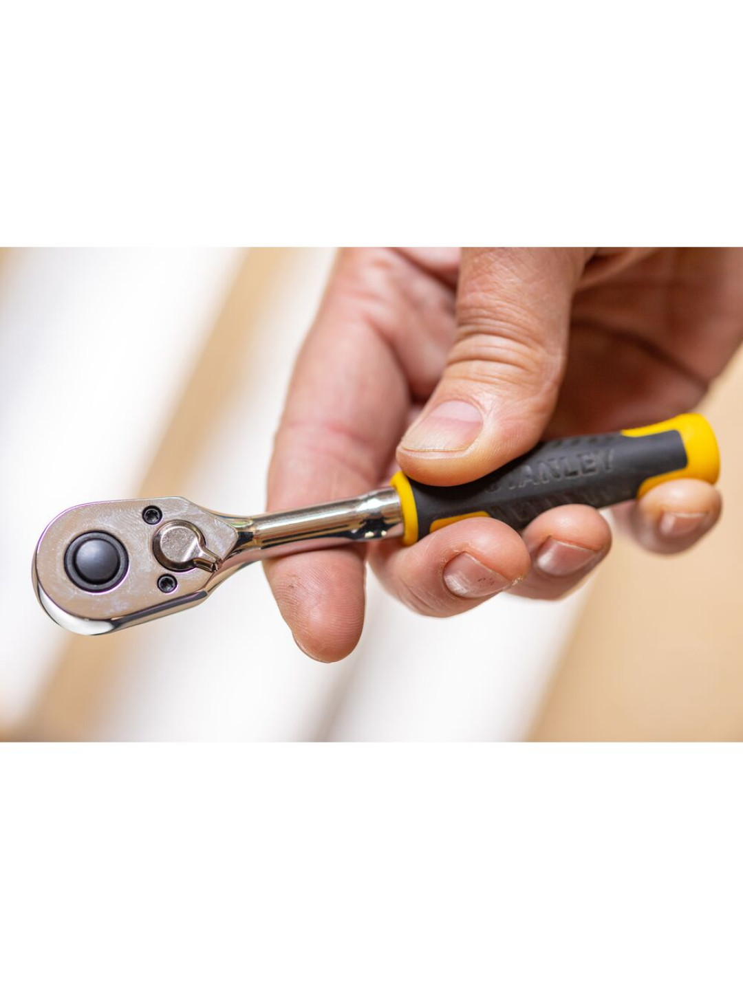 STANLEY 3/8 colio 72 dantų terkšlė pagaminta iš smulkių 72 dantų, kurie leidžia atlikti 5° žingsnius, užtikrinant priveržimo galią ir tikslumą siaurose erdvėse. Ji turi didelį, lygų greito atleidimo mygtuką, kad būtų lengva išimti galvutę. STANLEY 3/8 colio 72 dantų terkšlė tinka bet kokiai aplinkai. Ši universali STANLEY 3/8 colio 72 dantų terkšlė sukurta efektyvumui ir našumui. Patogumą garantuoja dviejų medžiagų rankena, kuri užtikrina gerą sukibimą, apsaugo nuo atsitiktinio perjungimo ir leidžia lengvai valdyti viena ranka.
