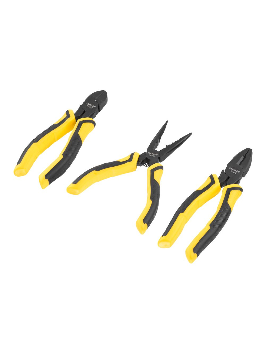 STANLEY 3 dalių DYNAGRIP replės 150 mm kombinuotos / įstrižo pjovimo / ilgomis nosimis – tai trys naujos kartos STANLEY replės, skirtos įvairiems profesionaliems pritaikymams. Kiekvienas įrankis, sukurtas siekiant patvarumo, našumo ir puikaus sukibimo, pagamintas iš kalimo būdu pagaminto plieno, užtikrinančio tvirtumą ir ilgaamžiškumą, ir apdorotas juodo oksido apdaila, kad būtų atsparesnis korozijai ir ilgesnį gaminio tarnavimo laiką. Dviejų medžiagų trijų zonų rankena turi apsaugos zoną, kuri neleidžia pirštams slysti į priekį, taip pat stiprumo zoną, kuri padeda žinoti, kur taikyti jėgą, ir valdymo zoną, kuri padeda atidaryti reples, užtikrinant kontrolę, sukibimą ir patogumą naudojant – su minimaliu nuovargio pavojumi.