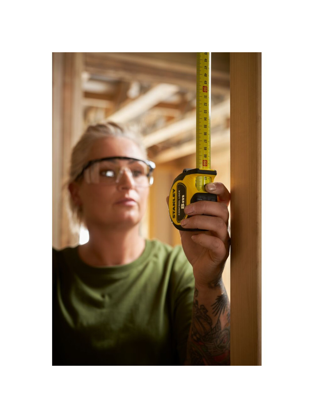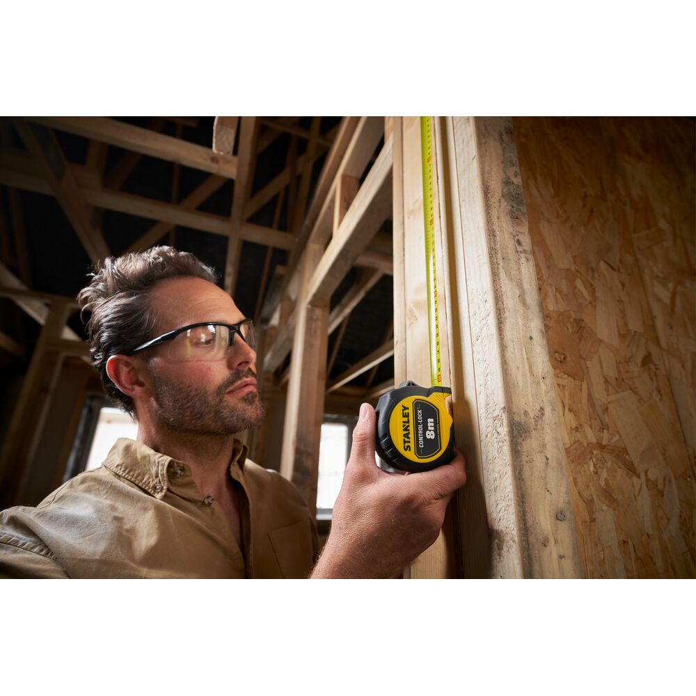 Lengvas ir kompaktiškas STANLEY CONTROL-LOCK™ 8M (25 mm pločio) ruletė su guminiu apvalkalu yra ergonomiškai suprojektuota, kad būtų užtikrintas patogus suėmimas ir naudojimas, tuo pačiu užtikrinant profesionalios klasės patvarumą ir ilgą pasiekiamumą. Ruletė turi integruotą pirštų stabdį, kuris suteikia naudotojams maksimalią kontrolę ir apsaugą ištiesiant ir įtraukiant geležtę. Ruletės mentės plotis yra 25 mm, o pasiekiamas įspūdingas 3,5 metro atstumas. Pirmieji aštuoni mentės centimetrai yra apdoroti patvaria „BladeArmor“ danga, kad būtų optimalus atsparumas dilimui ar lūžiams. Be to, mentė turi dvipusį spaudinį, kad būtų galima greitai ir lengvai atlikti matavimus virš galvos. STANLEY CONTROL-LOCK™ 8M (25 mm pločio) ruletė turi nuimamą magnetą ir daugiafunkcį kabliuką, kad būtų geresnis sukibimas ir didžiausias universalumas naudojant ant visų paviršių. Ryškiai geltona STANLEY mentė užtikrina geresnį matomumą daugumoje darbo vietos sąlygų.