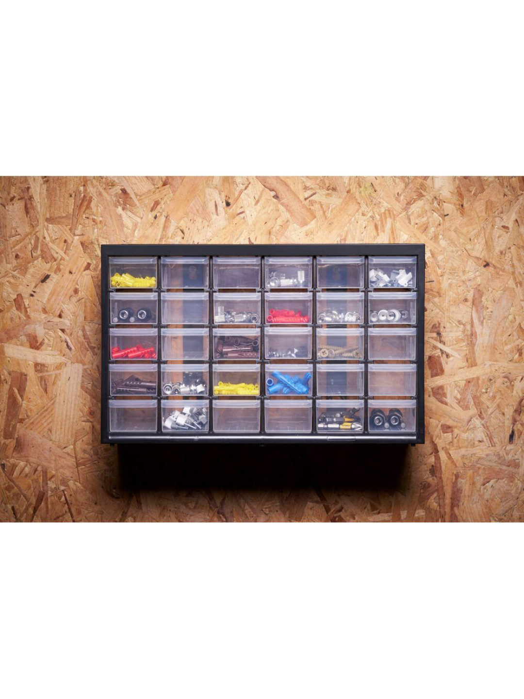 Patvarios plastikinės STANLEY dėžės smulkioms dalims tvarkingai susidėti.