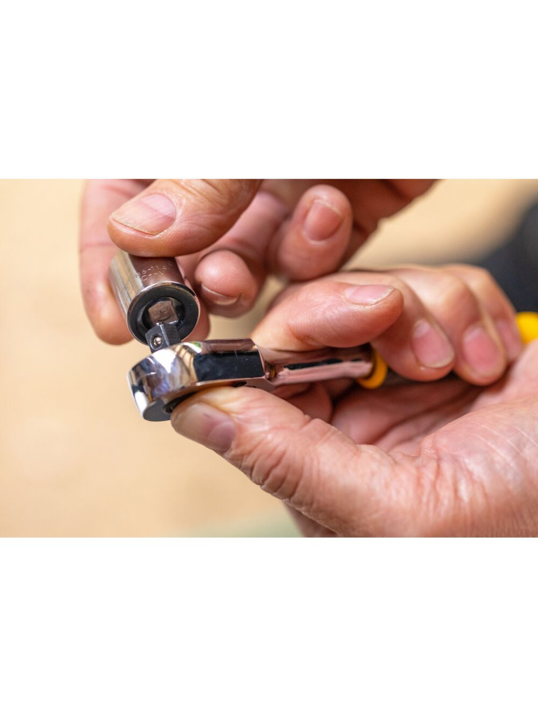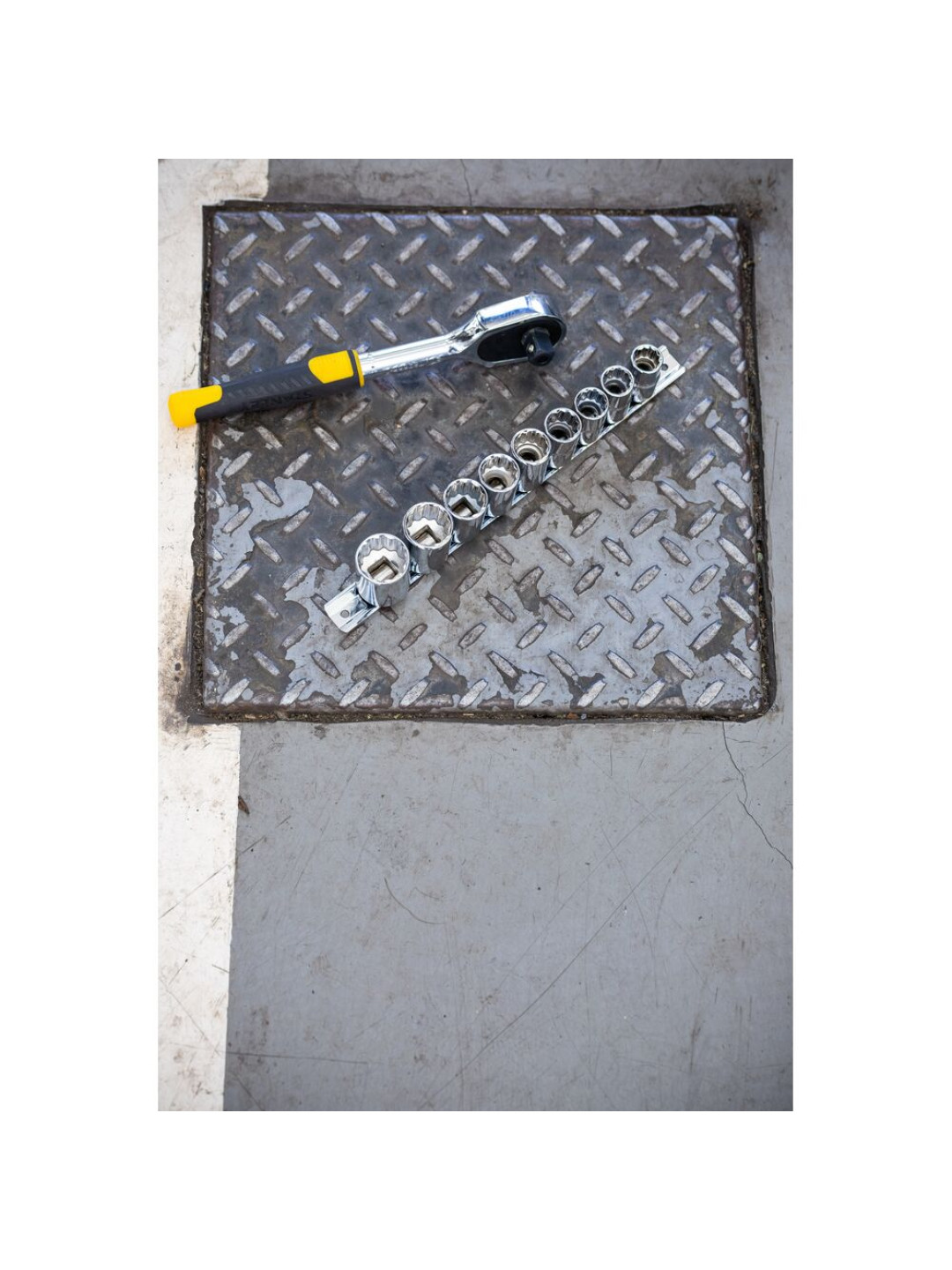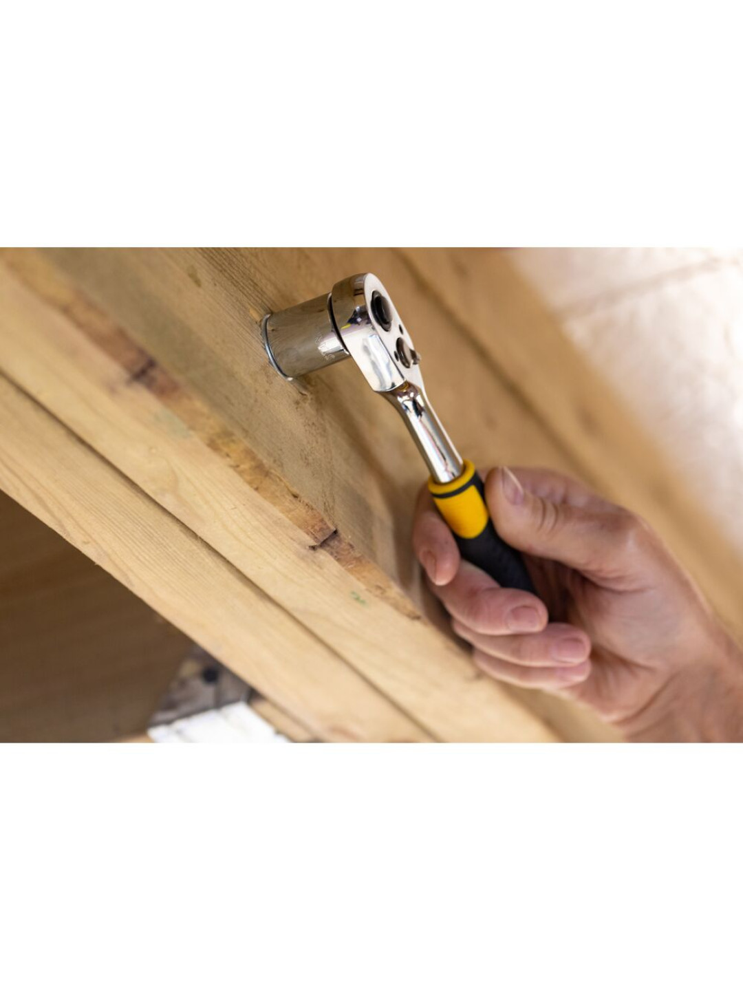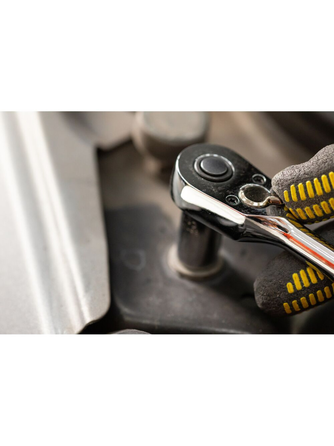 STANLEY 1/4 colio 72 dantų terkšlės ir galvučių rinkinys (11 dalių) turi 72 dantis, vieną skląsčio mechanizmą su 5° žingsniu ir grįžtamojo ryšio mechanizmą, kuris pagerina prieigą. Didelis, lygus greito atleidimo mygtukas leidžia lengvai išimti galvutes, o dviejų medžiagų rankena užtikrina patogų suėmimą ir maksimalų valdymą. Žemo profilio jungiklio svirtis leidžia lengvai valdyti viena ranka, o „Maxidrive“ profilis maksimaliai padidina kontaktą tarp galvutės ir veržlės/varžto. Grioveliai užtikrina lengvesnį galvutės naudojimą, ypač nešvarioje aplinkoje. Kakliukas žemyn palengvina naudojimą siaurose erdvėse, o matmenys matomi, kad būtų lengva nustatyti galvutės matmenis.