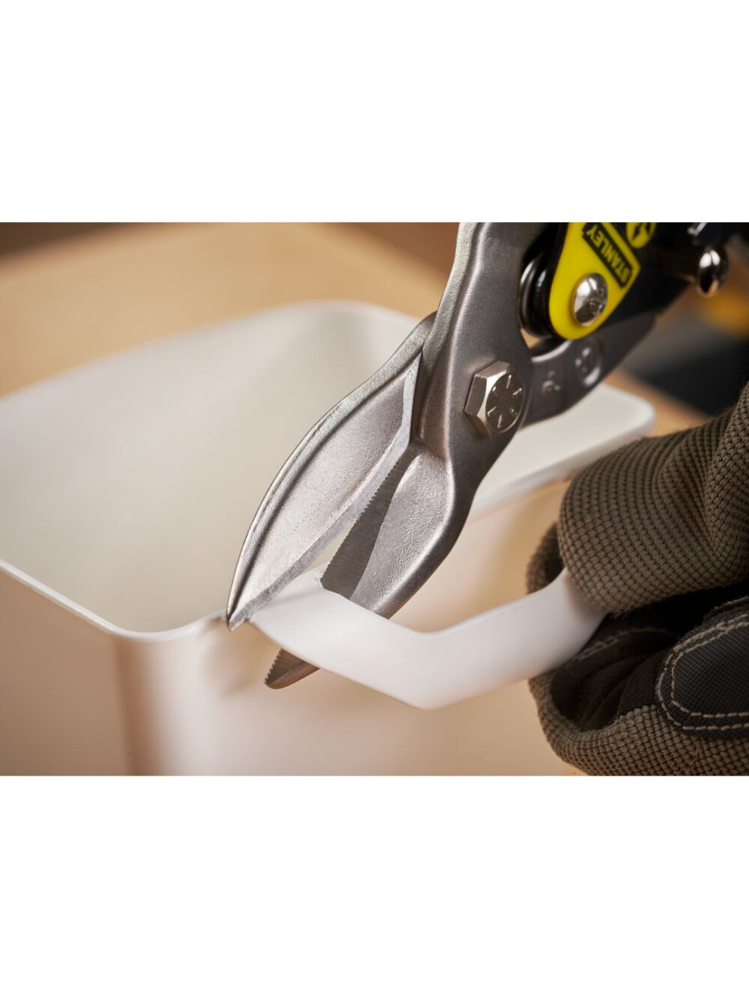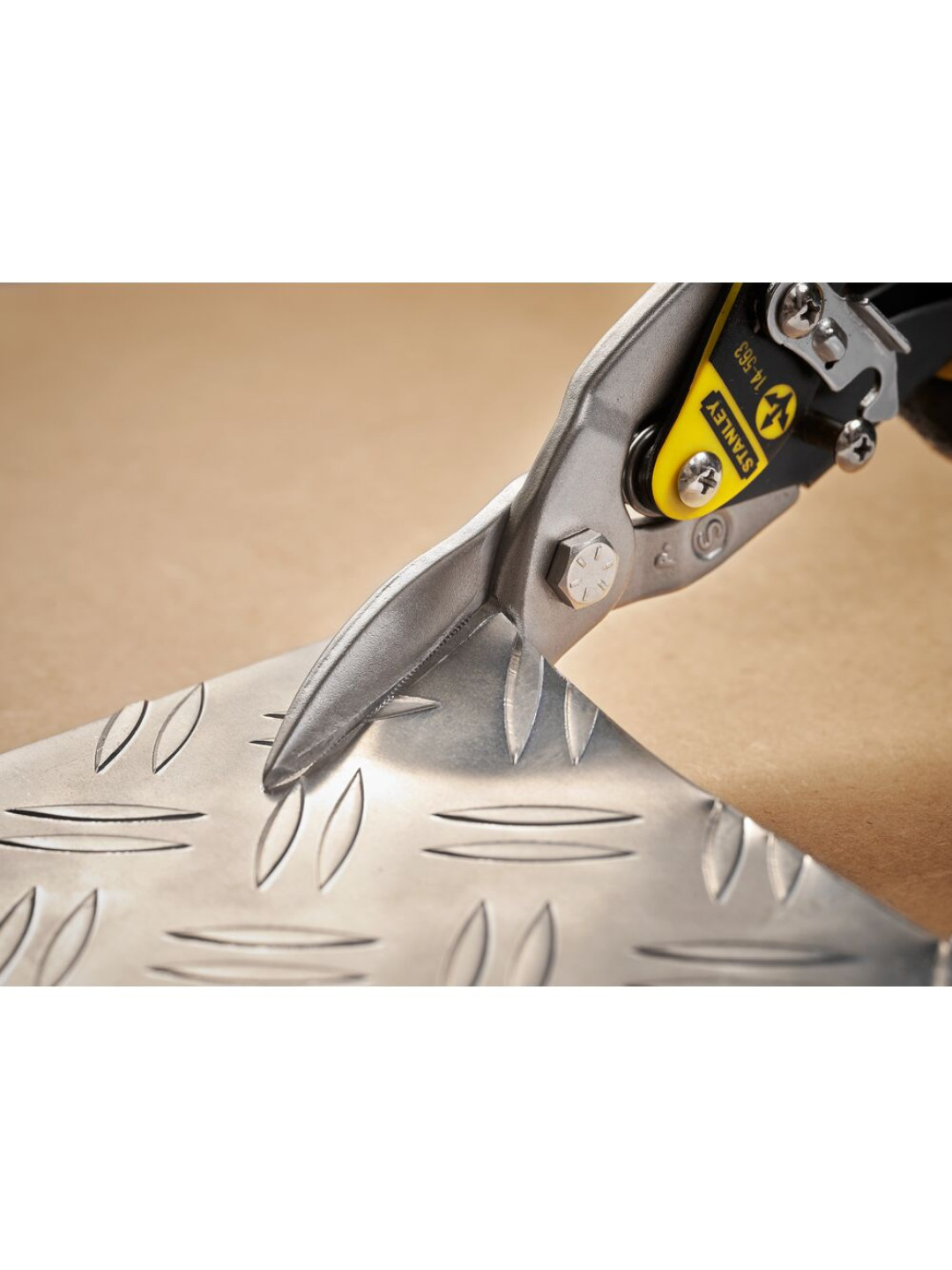 STANLEY FATMAX tiesaus pjovimo aviacinės žirklės su sudėtiniu pjovimo mechanizmus ir dantytais pjovimo ašmenimis kerta iki 18 dydžio šaltai valcuotą arba 23 dydžio nerūdijantįjį plieną. Dvigubas sukimosi mechanizmas užtikrina didesnę pjovimo galią. Kaltinio molibdeno plieno pjovimo ašmenys yra tvirti ir ilgaamžiai. Dantyti pjovimo kraštai apsaugo nuo slydimo pjaunant. Automatinis fiksatoriaus atleidimas leidžia valdyti viena ranka.